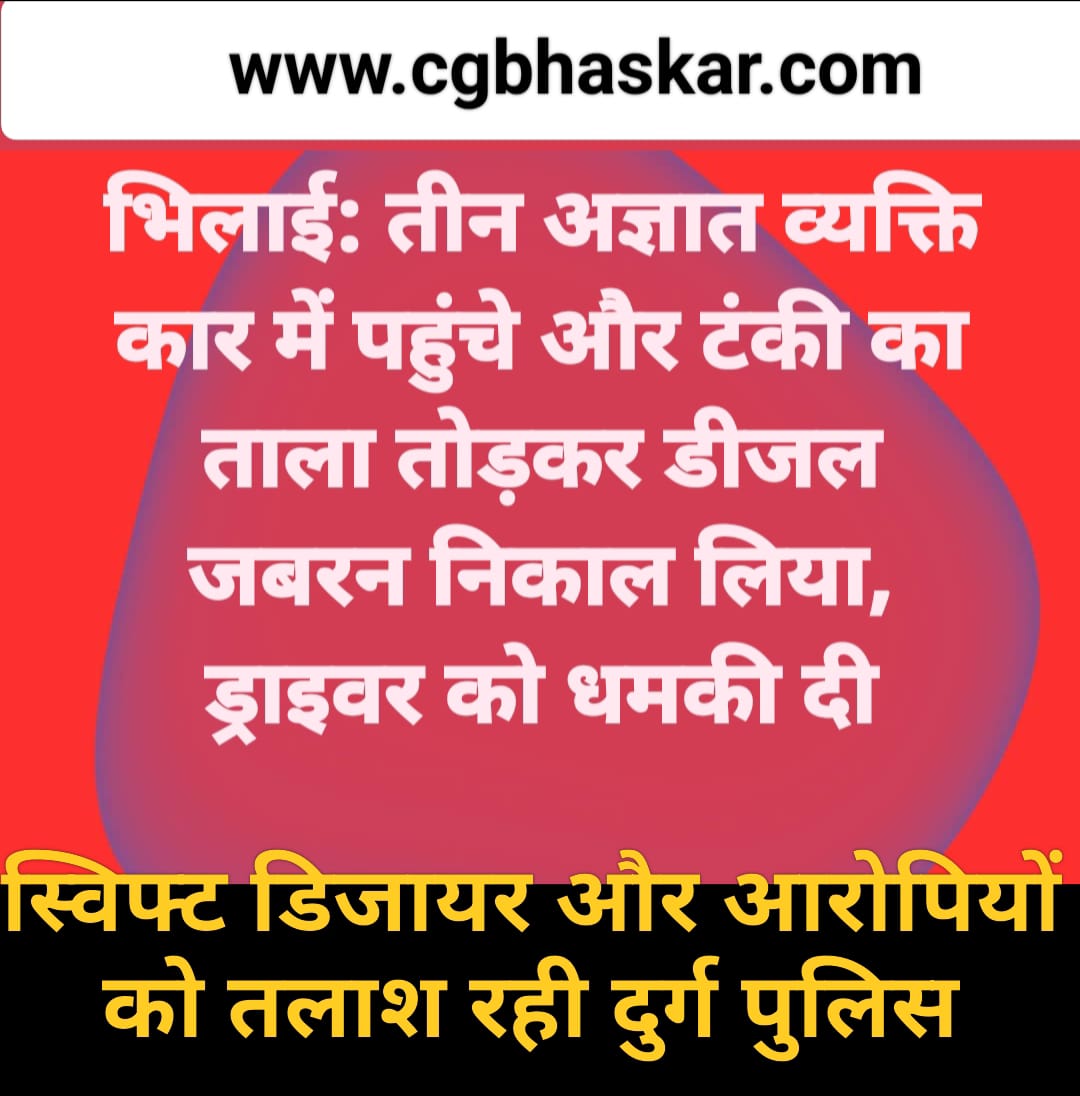 पुरानी भिलाई पुलिस ने बताया कि घटना 2 नवंबर की है। उमदा रोड पर जेके लॉजिस्टिक कंपनी की गाड़ी से जबरन डीजल निकाल लिया गया है। इस मामले में 3 अज्ञात लोगों के खिलाफ बीएनएस की धारा 303(2) के तहत मामला दर्ज कर जांच में लिया गया है।
