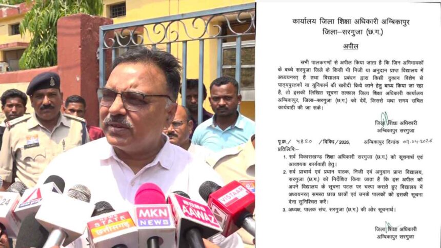 सीजी भास्कर 8 अप्रैल Ambikapur School News : सरगुजा जिले में निजी स्कूल संचालकों की बढ़ती मनमानी ने अभिभावकों की कमर तोड़ दी है। इस बीच जिला शिक्षा अधिकारी (DEO) दिनेश झा का एक चौंकाने वाला बयान सामने आया है। उन्होंने स्पष्ट किया है कि जब तक अभिभावक दफ्तर आकर लिखित शिकायत दर्ज नहीं कराते, तब तक स्कूलों के खिलाफ कोई ठोस कदम नहीं उठाया जाएगा। विभाग के इस “अनोखे फरमान” से पालकों में भारी रोष और असमंजस की स्थिति बनी हुई है।