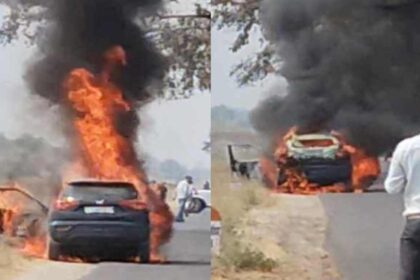 BJP Mandal President Car Fire : BJP मंडल अध्यक्ष की XUV300 में अचानक लगी आग, डिप्टी सीएम के कार्यक्रम में जाते समय हुआ हादसा