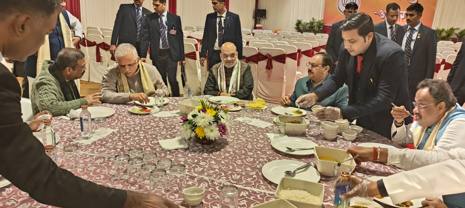 कार्यक्रम के दौरान केंद्रीय गृह मंत्री अमित शाह भी मौजूद रहे। माहौल अनौपचारिक था, लेकिन आने वाले महीनों में जिन राज्यों में चुनाव होने हैं, उनकी तैयारियों पर हल्की–फुल्की बातचीत होती रही।