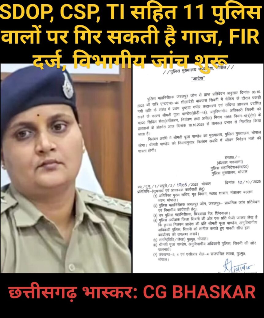 सीजी भास्कर, 13 अक्टूबर। पुलिस की FIR के मजमून से साफ है कि 1.45 करोड़ रुपए की लूट हुई है। आज पांच दिन बीत जाने के बाद भी आरोपी सीएसपी और टीआई समेत किसी के भी खिलाफ मामला दर्ज नहीं हुआ है। घटना सिवनी मध्यप्रदेश की है। (Suspension in police Department)