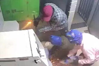 नकाब लगाकर घुसे और मशीन से काटा एटीएम, 30 लाख रुपये ले उड़े बदमाश, CCTV में कैद हुई घटना