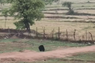 गांव में घुसे भालू को कुत्ते ने खदेड़ा, भोजन की तलाश में पहुंचा था, भौंक-भौंक कर दूर तक दौड़ाया
