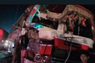 बस और ट्रक में जोरदार टक्कर, एक दर्जन से अधिक तीर्थ यात्री घायल