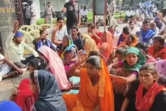 हाईटेंशन तार हादसा : मजदूर की मौत, DRM ऑफिस के सामने प्रदर्शन