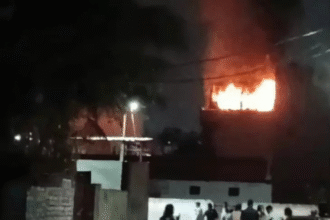 गैस गोदाम के पास घर में लगी आग: तीसरी मंजिल से गिरती रही चिंगारी, बड़ा हादसा टला..