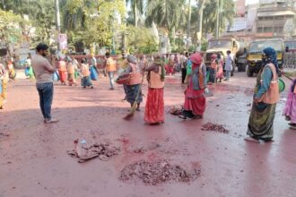 इंदौर में रंगपंचमी की गेर के बाद सिर्फ 38 मिनट में राजवाड़ा साफ, गेर मार्ग से एक डंपर जूते-चप्पल हटाए गए..