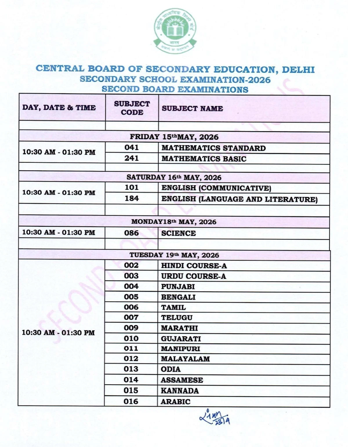 CBSE 10th Second Board Exam 2026 : सेकेंड बोर्ड एग्जाम की डेटशीट जारी, 15 मई से शुरू होंगी परीक्षाएं, जानें पूरा शेड्यूल