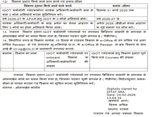 - वार्षिक गोपनीय प्रतिवेदन (APAR): वर्ष 2026-27 से कर्मचारियों के वार्षिक मूल्यांकन (APAR) में भी इन तीन कोर्स की अनिवार्यता को जोड़ा जाएगा। यानी, प्रमोशन और इंक्रीमेंट के लिए भी यह ट्रेनिंग आधार बनेगी।