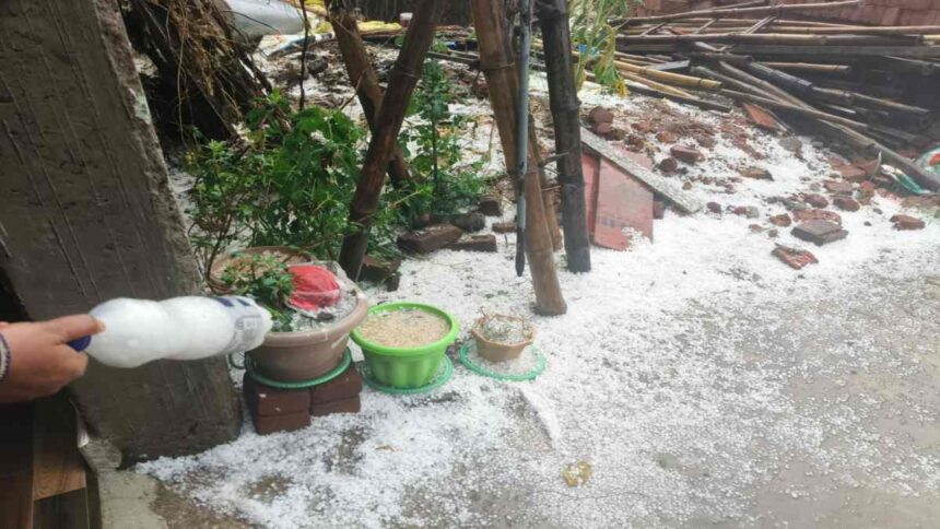 वाड्रफनगर विकासखंड में दोपहर बाद अचानक तेज़ आंधी के साथ जोरदार ओलावृष्टि हुई। करीब 15–20 मिनट तक गिरे ओलों ने सड़कों, छतों और खेतों को बर्फ़ जैसी परत से ढक दिया। स्थानीय लोगों के मुताबिक, (Chhattisgarh rain alert) के दौरान बदले मौसम ने जनजीवन को थाम सा दिया।