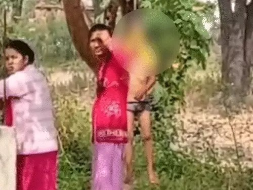 बच्चे को पेड़ से लटकाए जाने का वीडियो किसी ग्रामीण ने अपने फोन में कैद कर लिया था। सोशल मीडिया पर वीडियो आते ही स्थिति बिगड़ गई।