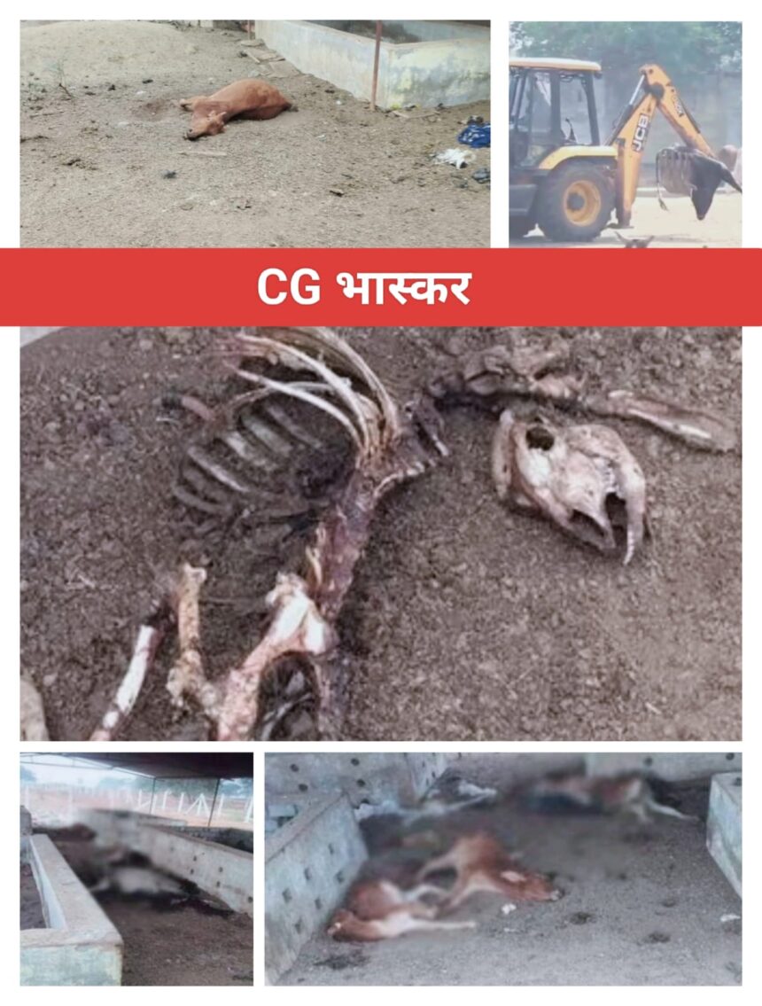दूसरी तरफ दुर्ग जिले के नंदिनी थाना क्षेत्र में अहिवारा के गोढ़ी गांव गोठान में भूख-प्यास से 13 से अधिक गायों की मौत हुई है। कुछ तो कंकाल में तब्दील हो गईं। मृत गाय के शव को कुत्ते नोचते भी दिखे हैं। बताया जा रहा है कि सरपंच ने फसल बचाने के लिए 15 दिन पहले करीब 40 आवारा मवेशियों को गोठान में बंद कर दिया था। आरोप है कि उन्हें चारा पानी नहीं दिया गया। घटना की जानकारी लगने के बाद गो-सेवकों ने हंगामा किया। FIR दर्ज कर सरपंच पर एक्शन लेने की मांग की। जनपद सीईओ ने मवेशियों का पीएम कराया है। उन्होंने आशंका जताई है कि मवेशियों की निमोनिया से मौत हुई है। बताया जा रहा है कि गो शालाओं में एक गाय के पीछे 35 रुपए वर्तमान में चारा पानी के लिए खर्च दिया जा रहा है।