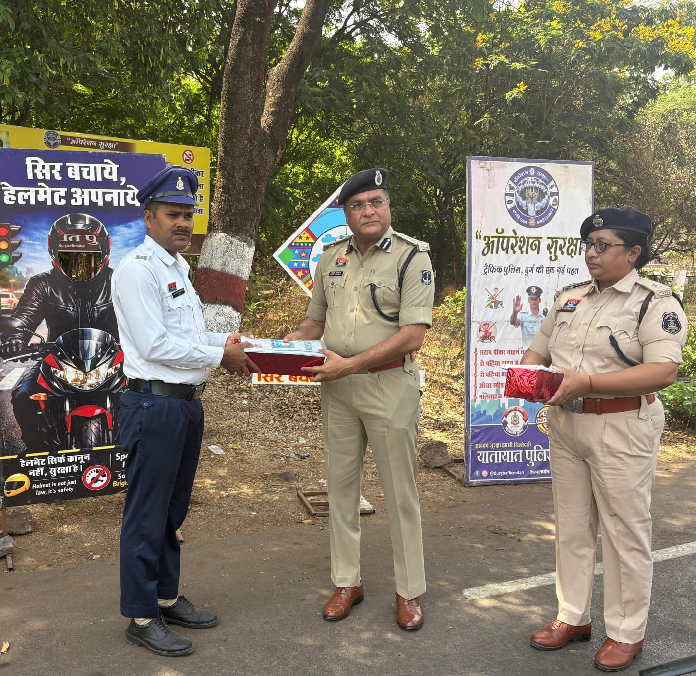 शुक्रवार, 10 अप्रैल को पुलिस उपमहानिरीक्षक (DIG) एवं वरिष्ठ पुलिस अधीक्षक (SSP) दुर्ग ने यातायात विभाग के अधिकारी-कर्मचारियों के लिए एक विशेष ‘राहत सामग्री वितरण कार्यक्रम’ आयोजित किया। इस दौरान घंटों धूप और धूल के बीच खड़े रहकर ड्यूटी निभाने वाले जवानों को गर्मी से बचाव के लिए निम्नलिखित सामग्री प्रदान की गई: