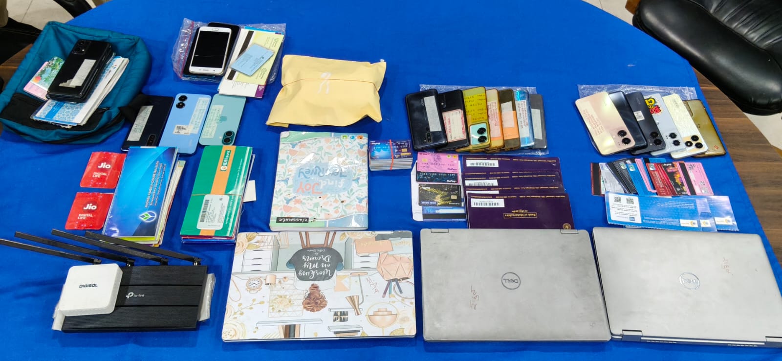 आरोपियों से 2 लाख 70 हजार रुपये कैश, इलेक्ट्रॉनिक गैजेट्स 3 लैपटॉप, 26 मोबाइल फोन, वाई-फाई राउटर, 45 बैंक पासबुक, 76 एटीएम कार्ड और 10 चेक बुक, 5 सिम कार्ड, 2 पैन कार्ड बरामद हुआ है।