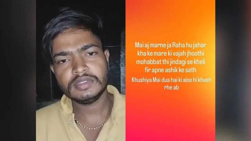 घटना संदीपन घाट थाना क्षेत्र की है. युवक ने इंस्टाग्राम पर लिखा – “मैं आज मरने जा रहा हूं, जहर खाकर मरने की वजह झूठी मोहब्बत है… उसने मेरे साथ खेला, अब अपने आशिक के साथ खुश है. मेरी दुआ है कि वह यूं ही खुश रहे.”