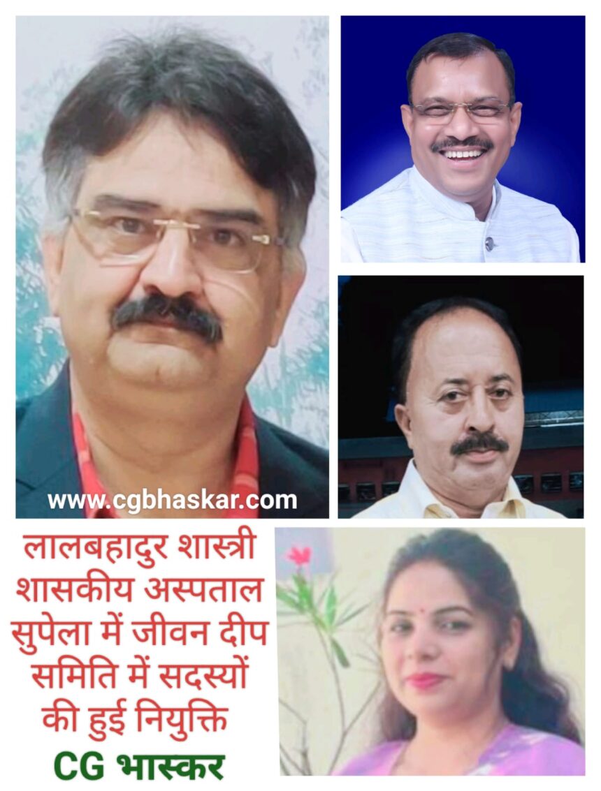 गृह, जेल, पंचायत एवं ग्रामीण विकास मंत्री विजय शर्मा के निर्देश पर वैशालीनगर विधानसभा अंतर्गत स्थित लाल बहादुर शास्त्री स्मारक शासकीय अस्पताल सुपेला में जीवनदीप समिति में प्रेमचंद देवांगन, डॉ. जय तिवारी, त्रिलोचन सिंह एवं श्रीमती मनीषा राठी को सदस्य नियुक्त किया गया है।