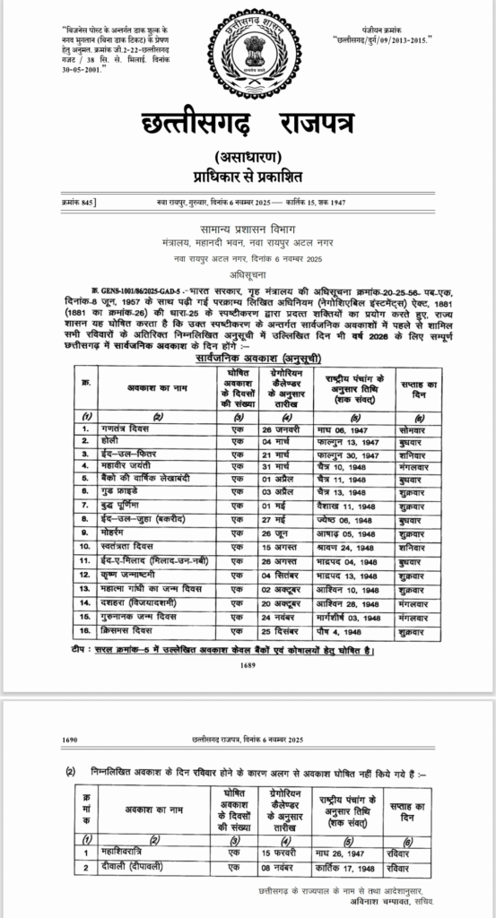 Holiday List 2026 Chhattisgarh – संतुलित कैलेंडर, सुचारु कार्यप्रणाली की दिशा में कदम