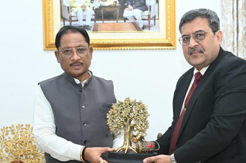 रायपुर। मुख्यमंत्री विष्णु देव साय से आज राजधानी रायपुर स्थित मुख्यमंत्री निवास कार्यालय में इंडियन ऑयल कॉर्पोरेशन लिमिटेड (IOCL) के छत्तीसगढ़ एवं मध्य प्रदेश के मुख्य महाप्रबंधक (CGM) अजय कुमार श्रीवास्तव ने शिष्टाचार भेंट की।