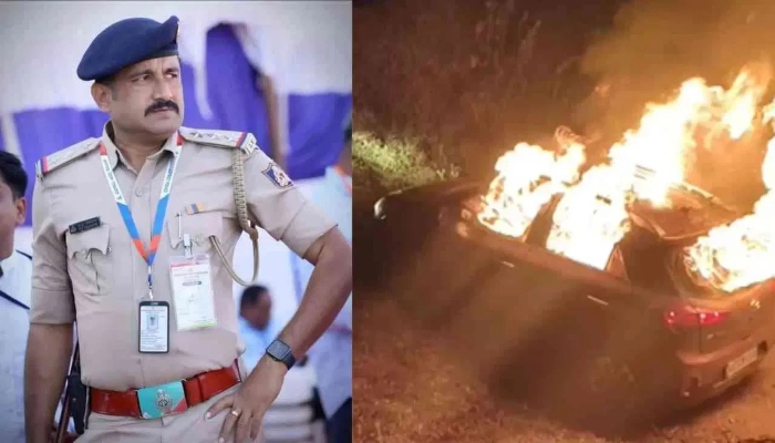 परिवार से मिलने जा रहे थे इंस्पेक्टर, कार अनियंत्रित होते ही भड़की आग