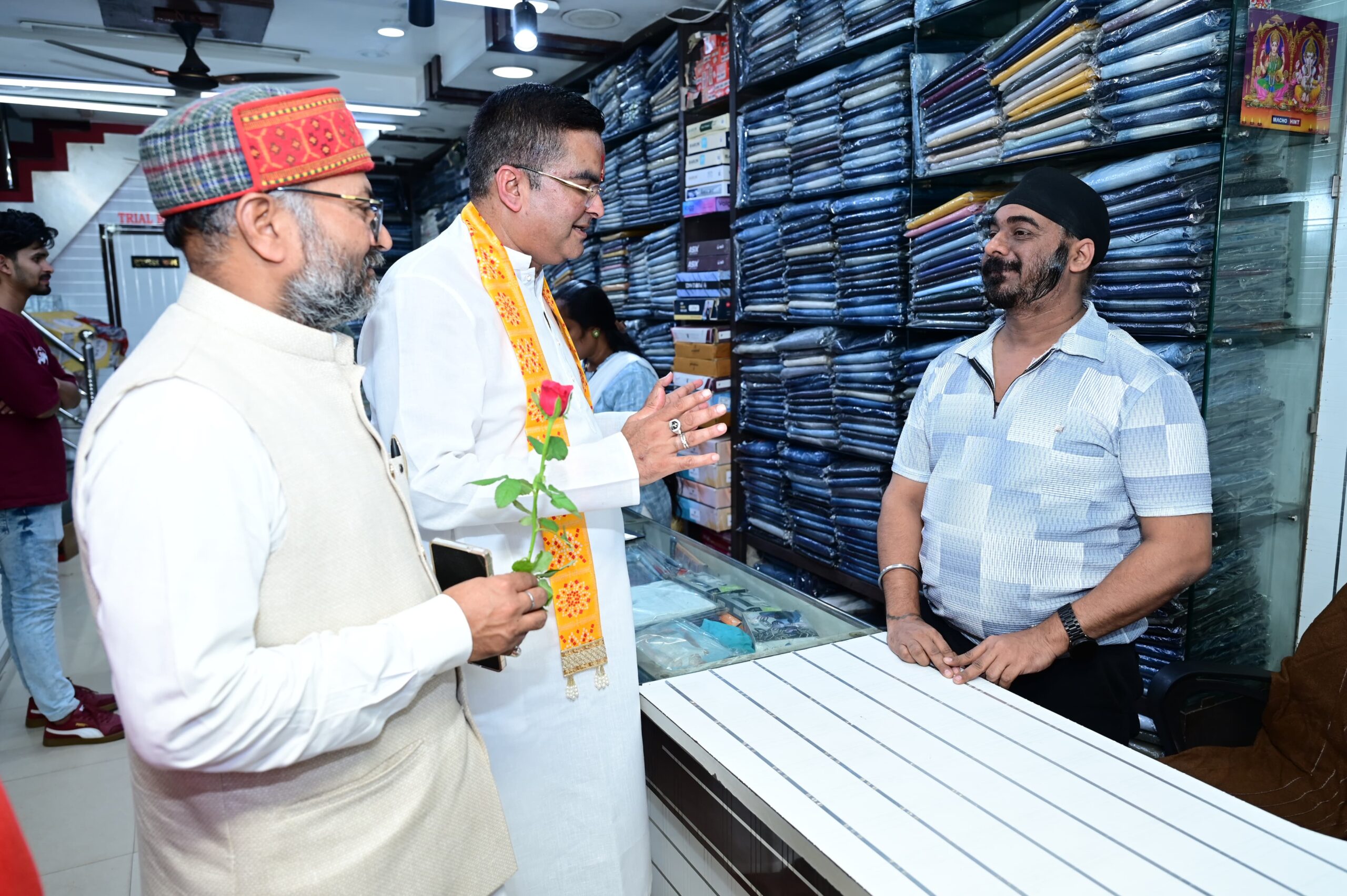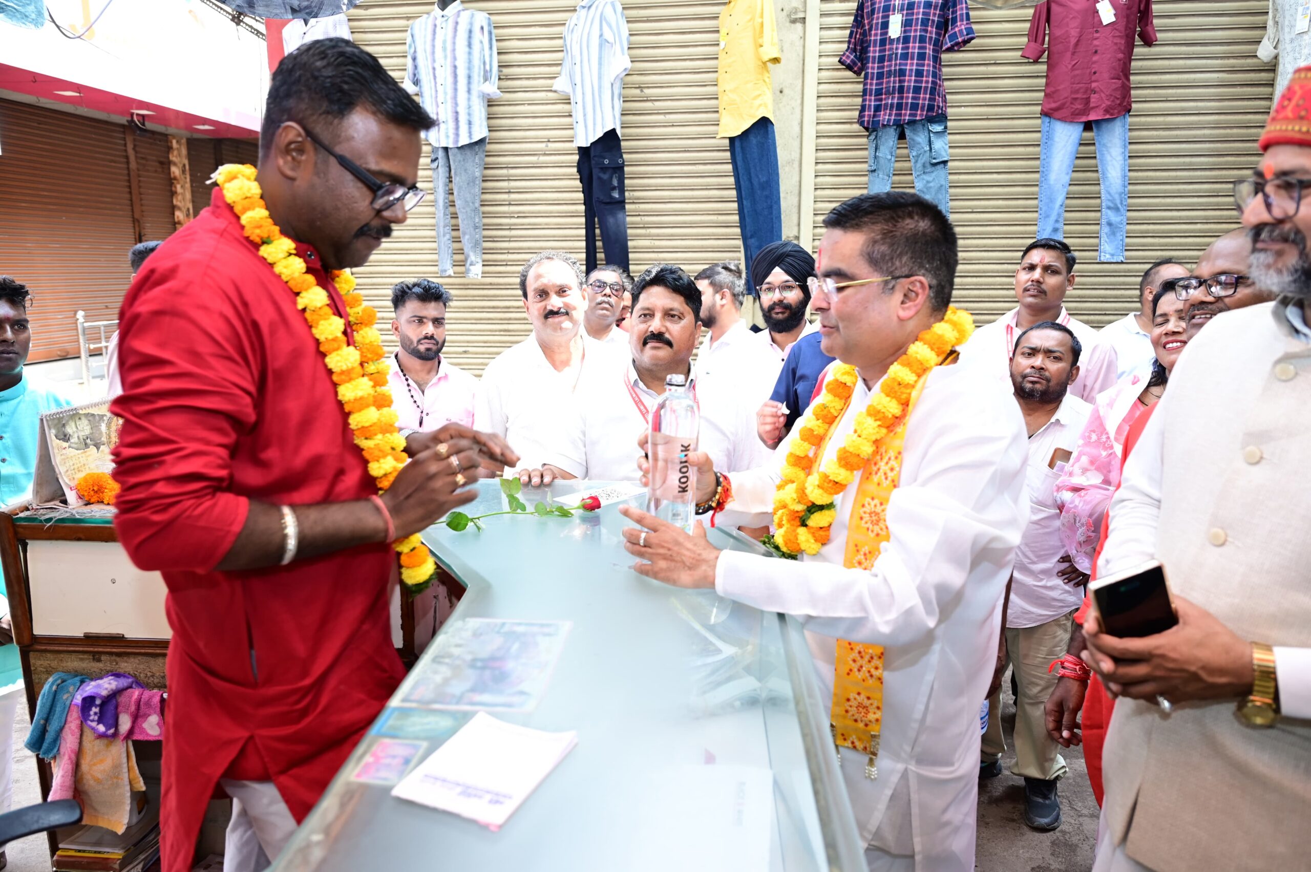 MLA presented roses to the traders : पैदल 3 घंटे चल दो मार्केट की हर दुकान में पहुंचे MLA रिकेश, व्यापारियों को गुलाब भेंट कर “जीएसटी बचत” की दी बधाई
