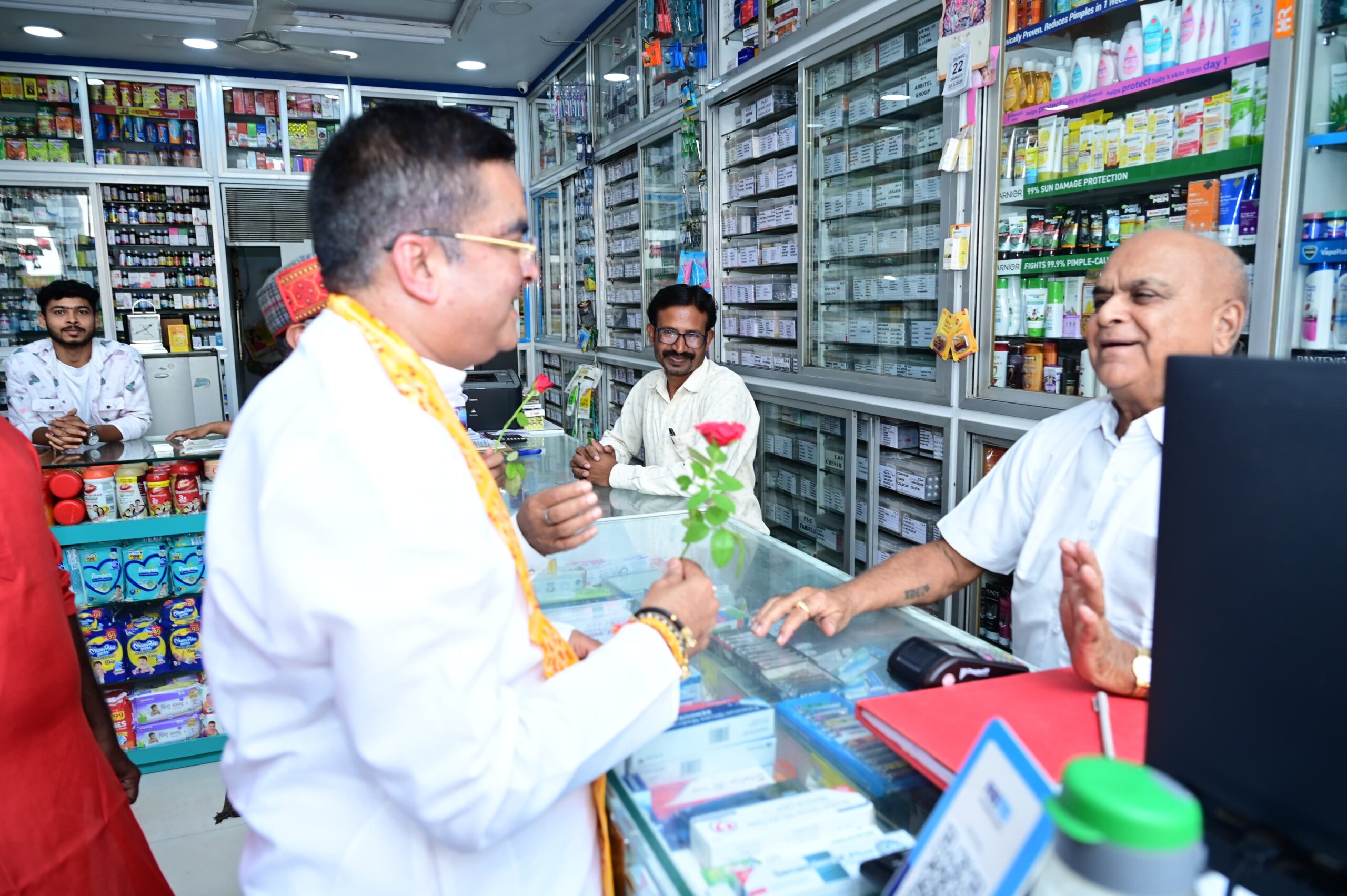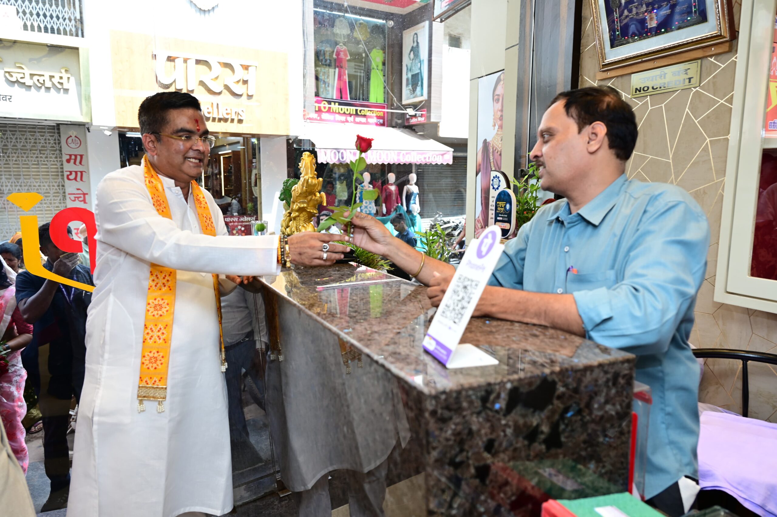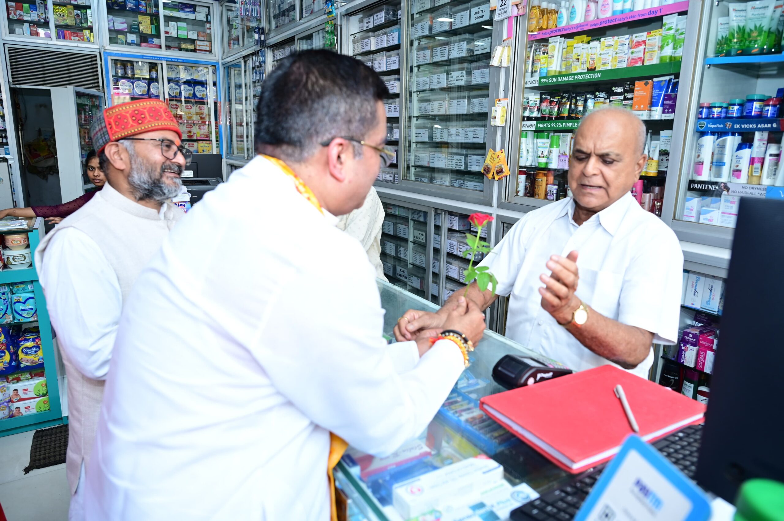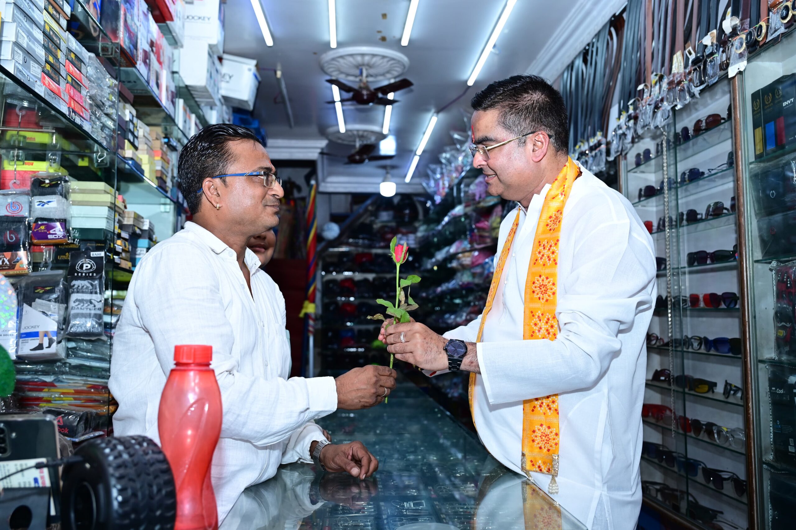 Home » MLA presented roses to the traders : पैदल 3 घंटे चल दो मार्केट की हर दुकान में पहुंचे MLA रिकेश, व्यापारियों को गुलाब भेंट कर “जीएसटी बचत” की दी बधाई