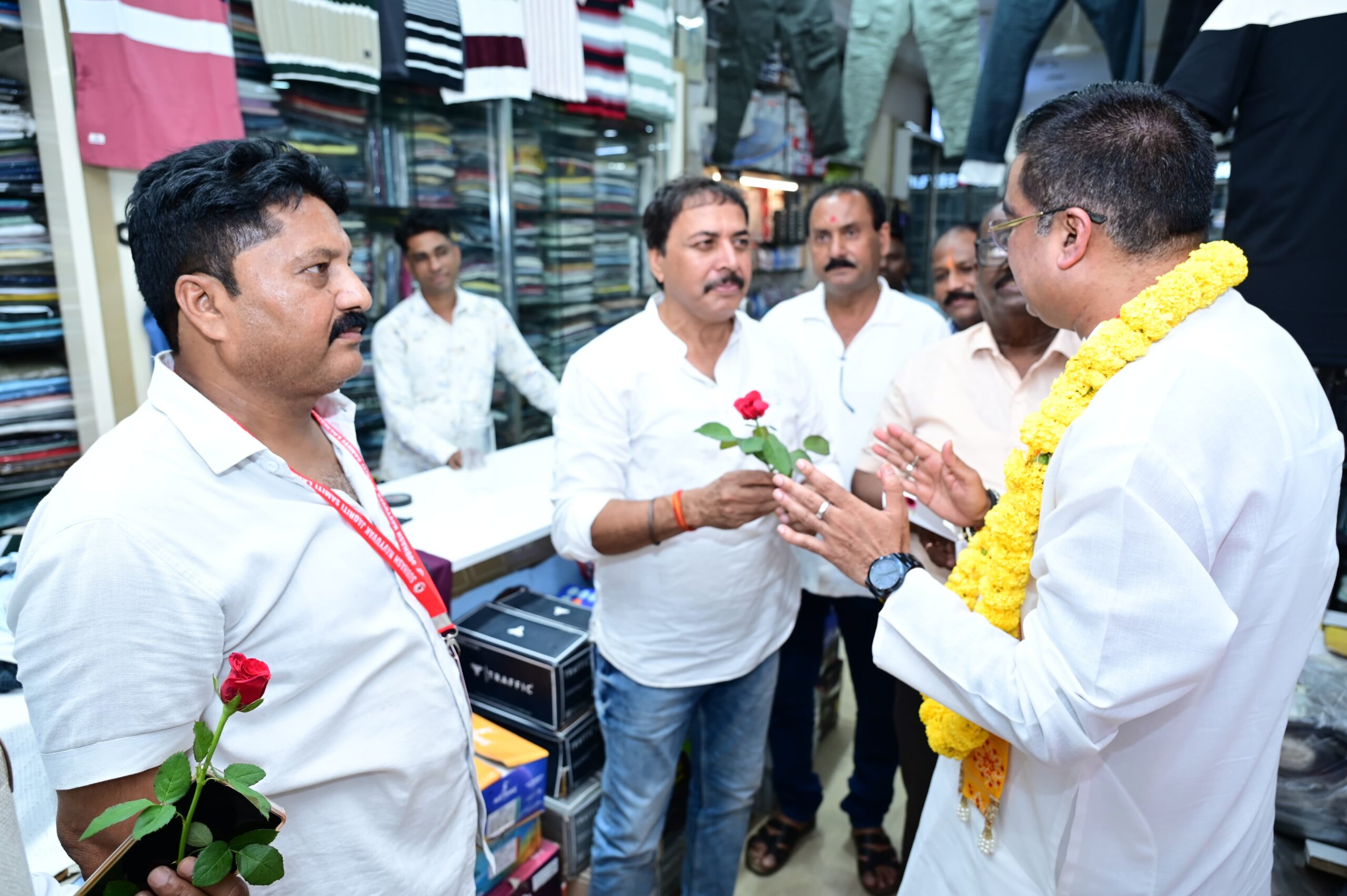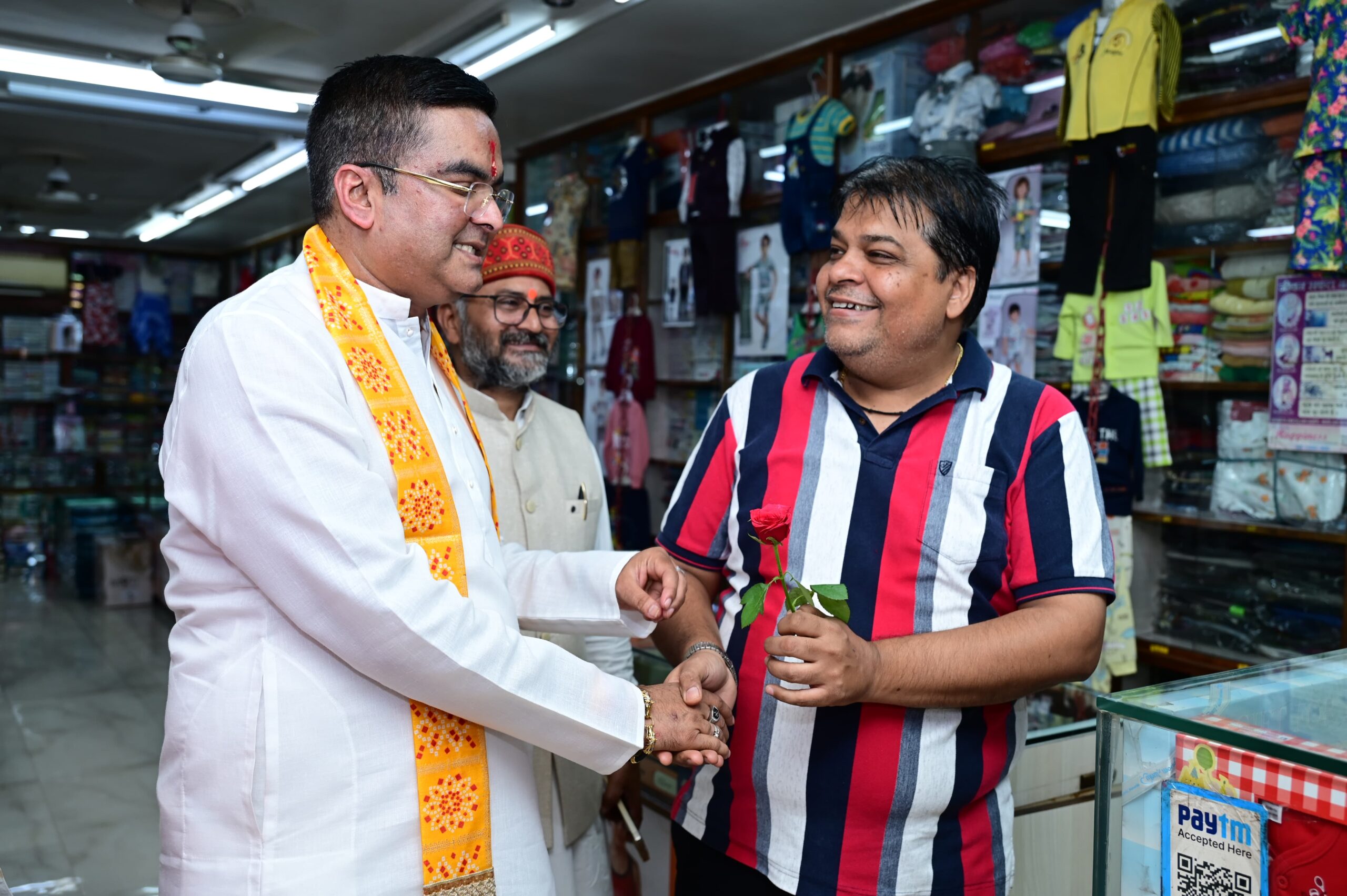आज जवाहर मार्केट वैशाली नगर विधानसभा के मुख्य मार्केट से लिंक रोड तक व्यापारियों को गुलाब का फूल देकर, उनका माला से स्वागत कर मैंने बधाई दी है।