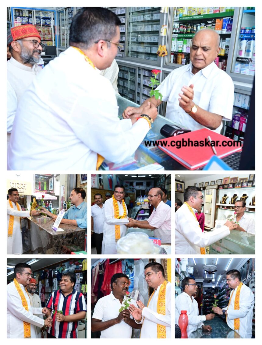 सीजी भास्कर, 22 सितंबर। आज जीएसटी में ऐतिहासिक सुधार के लागू होने पर वैशाली नगर विधायक रिकेश सेन ने पावर हाऊस के प्रमुख जवाहर मार्केट और लिंक रोड की हर दुकानों तक पदयात्रा कर संचालकों को गुलाब फूल भेंट किया। (MLA presented roses to the traders)