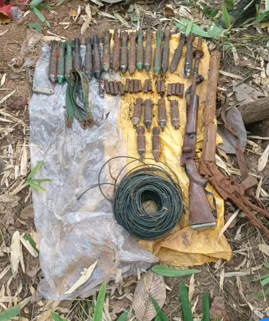 सर्च ऑपरेशन के दौरान छह अलग-अलग स्थानों से भारी मात्रा में हथियार और सामग्री बरामद की गई। इसमें इंसास राइफल, .303 राइफल, 12 बोर बंदूकें, देशी कट्टे, बीजीएल लॉन्चर, सिंगल शॉट हथियार, बड़ी संख्या में जिंदा कारतूस, मैगजीन और बीजीएल सेल शामिल हैं। साथ ही इलेक्ट्रिक वायर और अन्य तकनीकी सामान भी मिला है।
