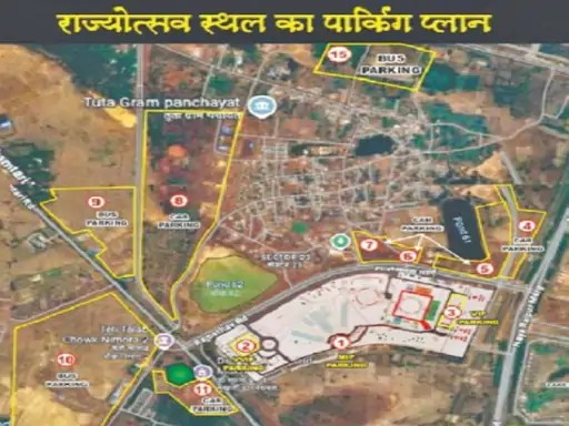 1️⃣ बलौदाबाजार, बिलासपुर, मुंगेली रूट से आने वाले रिंग रोड-3 और कयाबांधा अंडरब्रिज से पी-15 पार्किंग पहुंचेंगे।