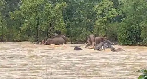 Raigarh Elephants Bathing सोशल मीडिया पर चर्चा का विषय बना हुआ है। छत्तीसगढ़ के रायगढ़ जिले में 48 हाथियों का दल जंगल से निकलकर पोड़ी तालाब पहुंचा और देर तक नहाता रहा। इस दौरान बड़े हाथियों के साथ उनके शावक भी पानी में खेलते नजर आए। ग्रामीणों ने इस अद्भुत दृश्य को अपने मोबाइल कैमरे में कैद कर लिया।