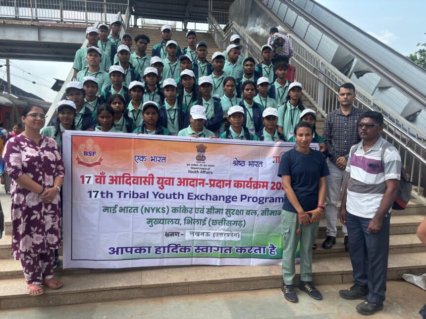 सीजी भास्कर, 25 सितम्बर। छत्तीसगढ़ के कांकेर और नारायणपुर के नक्सल प्रभावित क्षेत्रों के आदिवासी युवाओं का पहला जत्था 23 सितंबर 2025 को लखनऊ के लिए रवाना हुआ।इस जत्थे में 20 लड़के और 20 लड़कियां शामिल हैं। इनके साथ सीमा सुरक्षा बल (BSF) के दो पुरुष और दो महिला सुरक्षा अधिकारी भी मौजूद थे। (Tribal Youth Exchange Program)