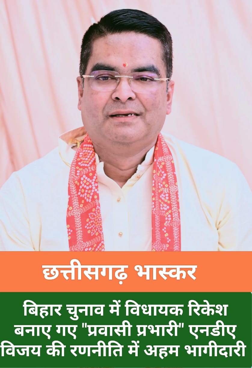 भिलाई नगर, 08 अक्टूबर। आगामी बिहार चुनाव में एनडीए प्रत्याशियों के प्रचार प्रसार में भारतीय जनता पार्टी छत्तीसगढ़ से तीन विधायक, एक सांसद और दो मंत्रियों को आज जिम्मेदारी दी गई है। संगठन से मिली इस अहम जिम्मेदारी के लिए सूचीबद्ध विधायकों में वैशाली नगर के विधायक रिकेश सेन भी शामिल हैं। (Rikesh will handle Bihar election)