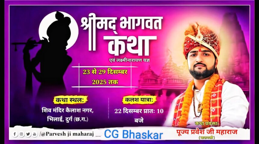 Home » Shrimad Bhagwat Katha Bhilai: कैलाश नगर में 22 दिसंबर से शुरू होगा श्रीमद् भागवत कथा ज्ञान यज्ञ, वाराणसी से पधारेंगे प्रवेशजी महाराज