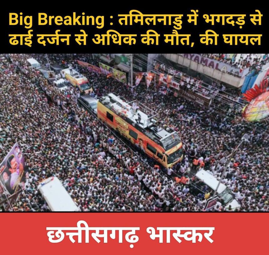 सीजी भास्कर, 27 सितंबर। तमिलनाडु के करूर में एक्टर विजय की रैली में शनिवार शाम को भगदड़ मच गई। इसमें 29 लोगों की मौत हो गई। मरने वालों में कुछ बच्चे भी शामिल हैं। (TN Stampede at rally)
