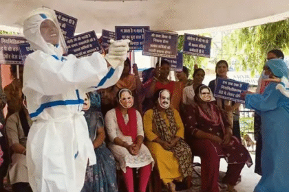 बिलासपुर में NHM कर्मचारियों का अनोखा विरोध: मंत्रियों का मुखौटा पहनकर गाया-बजाया