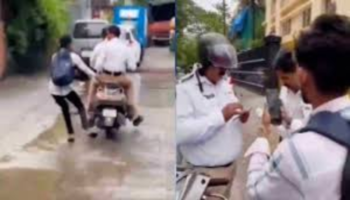 यह घटना अंबिकानगर वागले एस्टेट इलाके की है, जहां दो ट्रैफिक पुलिसकर्मियों ने नियम तोड़ने पर छात्र का चालान काटा। इसके कुछ ही देर बाद छात्र ने देखा कि वही पुलिसकर्मी बिना Vehicle Number Plate वाली स्कूटी पर सवार हैं। उसने तुरंत पीछा किया और उन्हें रोक लिया। इसके बाद सड़क पर दोनों पक्षों के बीच मराठी में बहस शुरू हो गई।
