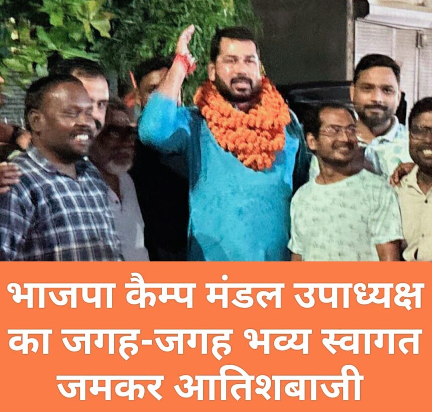 आज रायपुर से लौटने पर कैम्प क्षेत्र में जगह जगह इस युवा तुर्क उपाध्यक्ष का जोरदार स्वागत आतिशबाजी के साथ किया गया।