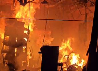 झोपड़ी दुकानों की कतार राख में तब्दील