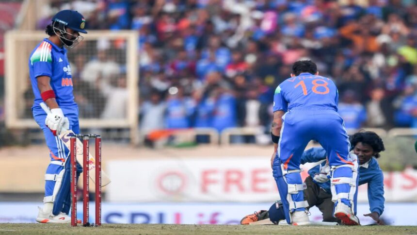 बीच मैदान में घुस आया फैन, पैर छूकर बोला “धन्य हो गए”