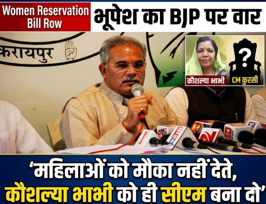सीजी भास्कर, 21 अप्रैल : महिला आरक्षण बिल को लेकर छत्तीसगढ़ की राजनीति गरमा गई है। पूर्व मुख्यमंत्री भूपेश बघेल ने भाजपा सरकार (Women Reservation Bill Row) पर निशाना साधते हुए तीखा बयान दिया है। उन्होंने कहा कि अगर मुख्यमंत्री को दिक्कत है तो कौशल्या भाभी को ही मुख्यमंत्री बना दिया जाए। यह पूरा विवाद महिला आरक्षण पर सियासी टकराव को और तेज कर रहा है।